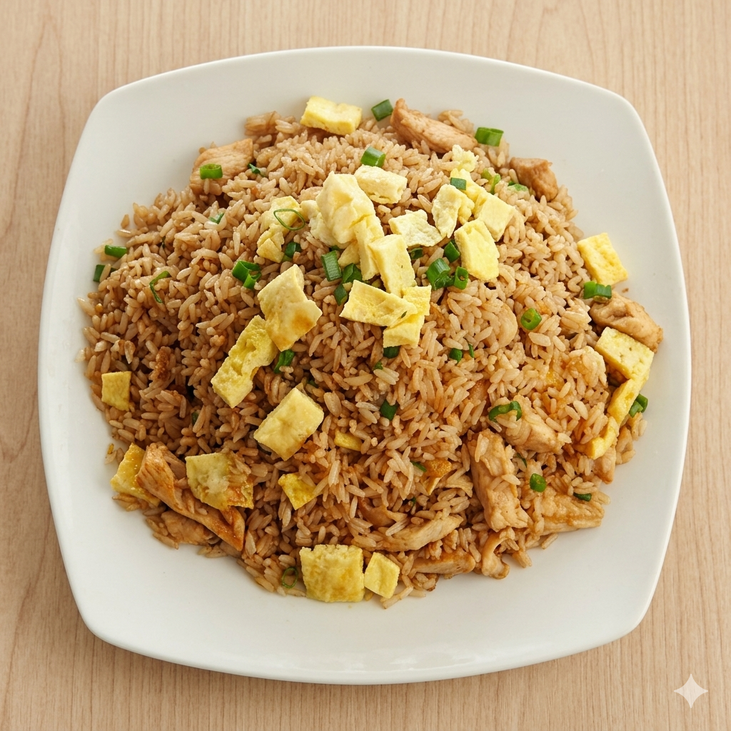 Chaufa de pollo, chaufa con pollo BBQ.